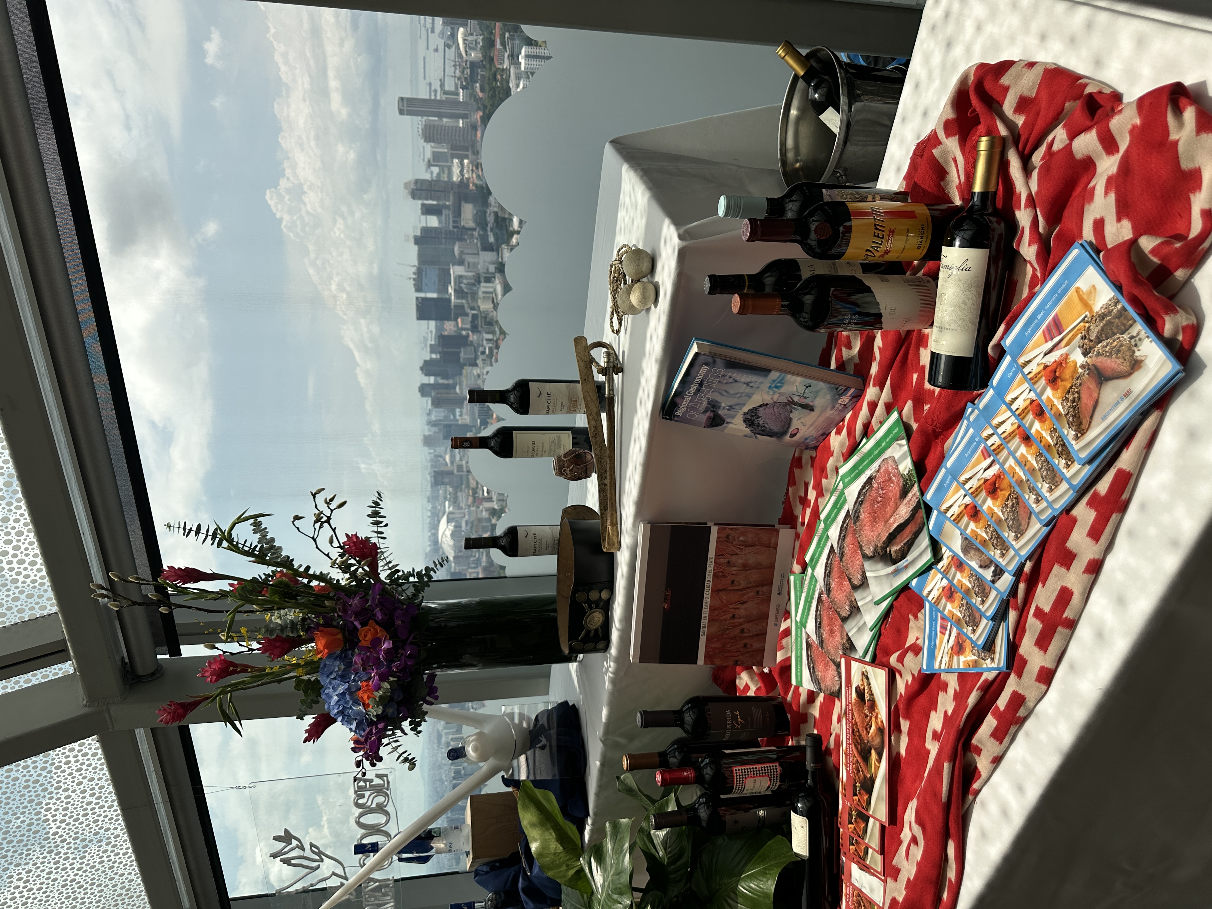 Along with the Argentine food and drink, which were highly appreciated by the guests and enhanced by the restaurant's setting—a renowned three-level gastronomic space at the top of an iconic tower with a 360º view of the entire city—IPCVA brochures were distributed and videos on gastronomic tourism were shown. In addition, IPCVA, Malbec wine, and institutional banners were displayed, as well as thematic decorations with gaucho- and tango-inspired textiles, accessories, and clothing.