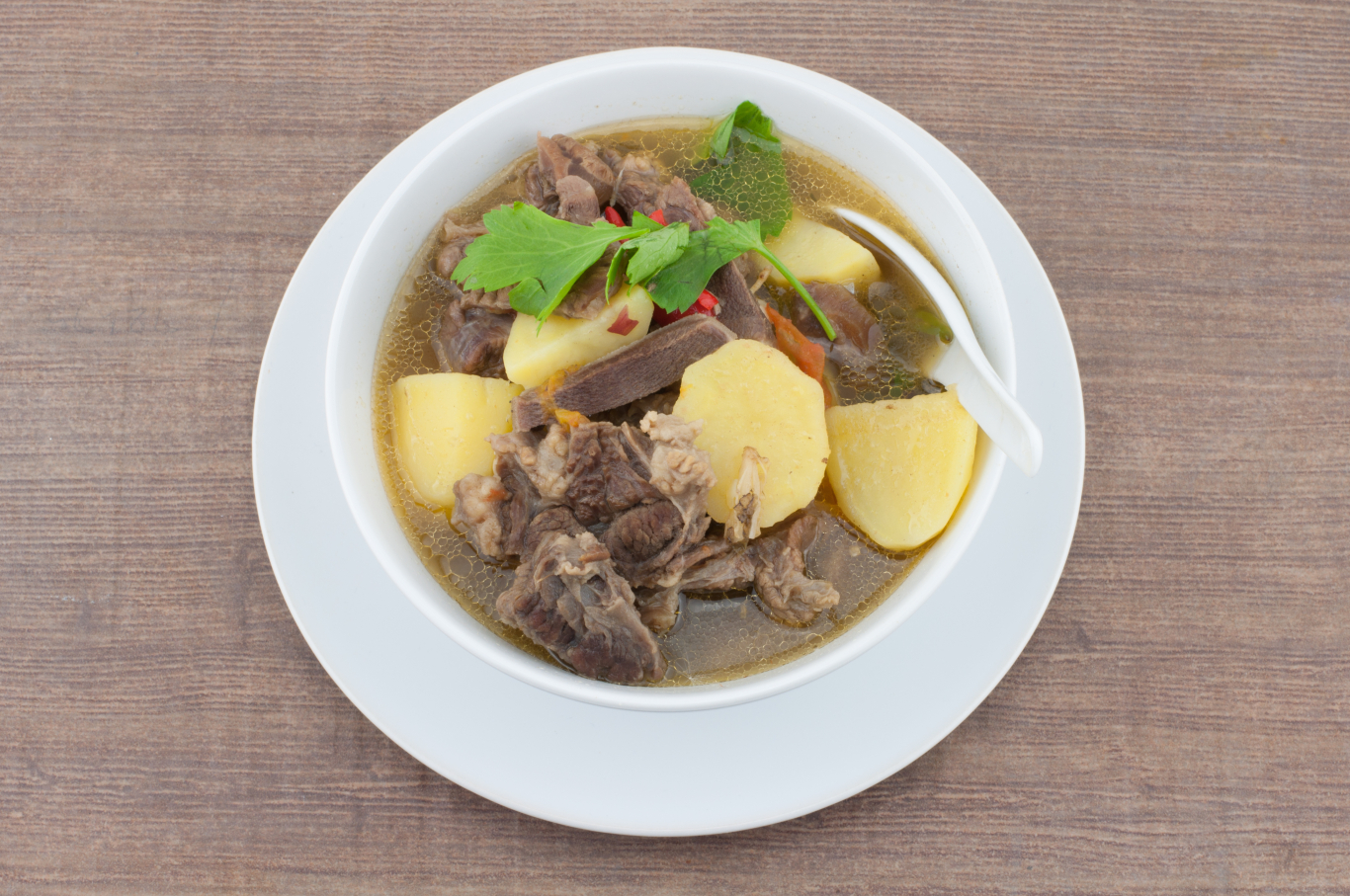 清汤的核心,是“干净”。这类汤通常选用瘦牛肉,搭配少量颜色浅、矿物味道温和的“白骨”,通过较短时间的小火慢煮,萃取牛肉本身的鲜香,而不是骨骼中的胶质。